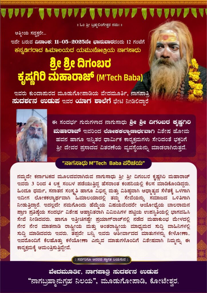 “ಹಲೋ.. ನಾನು ನಾಗ ಸಾಧು ಕೃಷ್ಣಗಿರಿ ಮಹಾರಾಜ್ ಮಾತಾಡೋದು ಯಮುನೋತ್ರಿಯಿಂದ” ಎಂದು ಓ ಮೊನ್ನೆ ಕಾಣಿಯೂರಿನ ಅಟೋ ಡೀಲರ್ ಒಬ್ಬರಿಗೆ ಒಂದು ಕಾಲ್ ಬಂದಿತ್ತು. “ಯಾರು ಬೇಕಿತ್ತು ನಿಮಗೆ ಸ್ವಾಮಿಗಳೇ, ನೀವು ರಾಂಗ್ ನಂಬರಿಗೆ ಕಾಲ್ ಮಾಡಿದ್ದೀರಿ”ಎಂದು ಇತ್ಲ ಕಡೆಯಿಂದ ಹೇಳಿದರೆ “ನೀವು ರಾಜ್ ಶೇಖರ್ ಅಲ್ವಾ, ನಾನು ಕಲ್ಯಾಣ್ ಕೃಷ್ಣ, ಹಾಸನದ ಮಲ್ನಾಡ್ ಇಂಜಿನಿಯರಿಂಗ್ ಕಾಲೇಜಿನಲ್ಲಿ ಇಂಜಿನೀಯರಿಂಗ್ ಮಾಡುವಾಗ ನಿನ್ನ ರೂಂಮೆಟ್ ಆಗಿದ್ದೆ” ಎಂದು ಅತ್ತಲಿಂದ ಸ್ವಾಮಿ ಹೇಳಿದ್ದಾರೆ. ಕಲ್ಯಾಣ್ ಕೃಷ್ಣ, ಮಲ್ನಾಡ್ ಕಾಲೇಜ್, ಹಾಸನ ಎಂದೆಲ್ಲಾ ಹೇಳುವಾಗ ಕಾಣಿಯೂರಿನ ರೂಂಮೆಟ್ ನ ಟ್ಯೂಬ್ ಲೈಟ್ ಹೊತ್ತಿಕೊಂಡಿದೆ. ಯೆಸ್, ಕಾಣಿಯೂರಿನ ಅಟೋ ಡೀಲರ್ ಗೆ ಕಾಲ್ ಮಾಡಿದ್ದು ಕಲ್ಯಾಣ್ ಕೃಷ್ಣ ಅಲಿಯಾಸ್ ಕೃಷ್ಣಗಿರಿ ಮಹಾರಾಜ್ ಎಂಬ ನಾಗ ಸಾಧು.